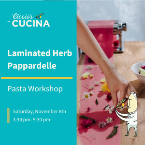 Join us for a hands-on workshop to create gorgeous and delicious herb-laminated pappardelle pasta.