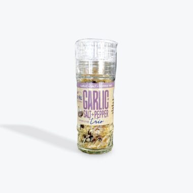 Elevate simple seasoning into something extraordinary. Our Dragonfly Hill Farm and Kitchen Salt & Pepper Trio + Diced Gourmet Garlic Blend layers three kitchen essentials into one bold, versatile jar – flaked sea salt, cracked black pepper, and diced gourmet garlic.
