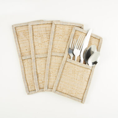 Bring cutlery to the table or the picnic blanket with this handmade jute pouch. Nestle forks, knives, and spoons into the pocket and take them anywhere you need to go!