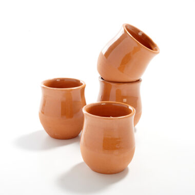 This set of multipurpose half glazed terracotta cups can be used as water glasses, stemless wine tumblers, or any other beverage of choice.